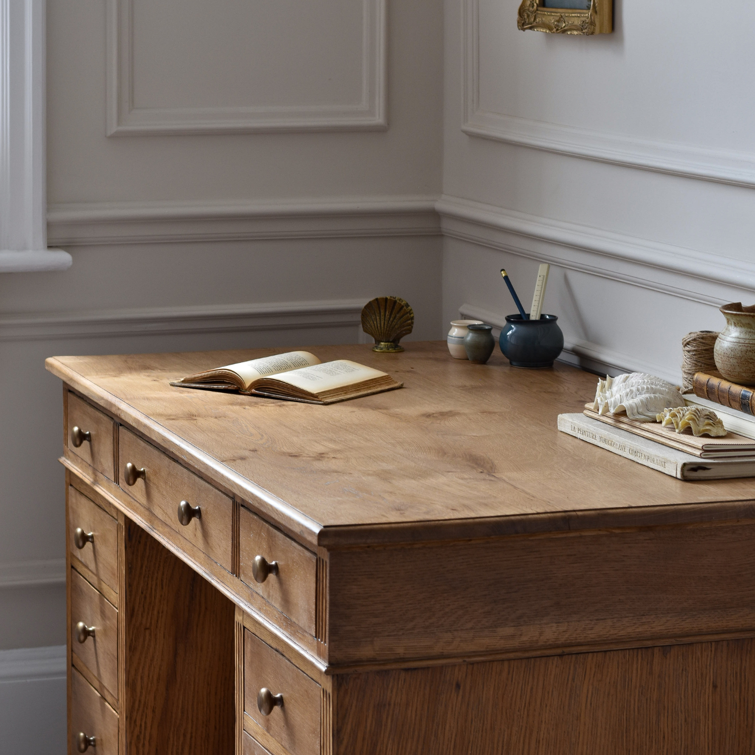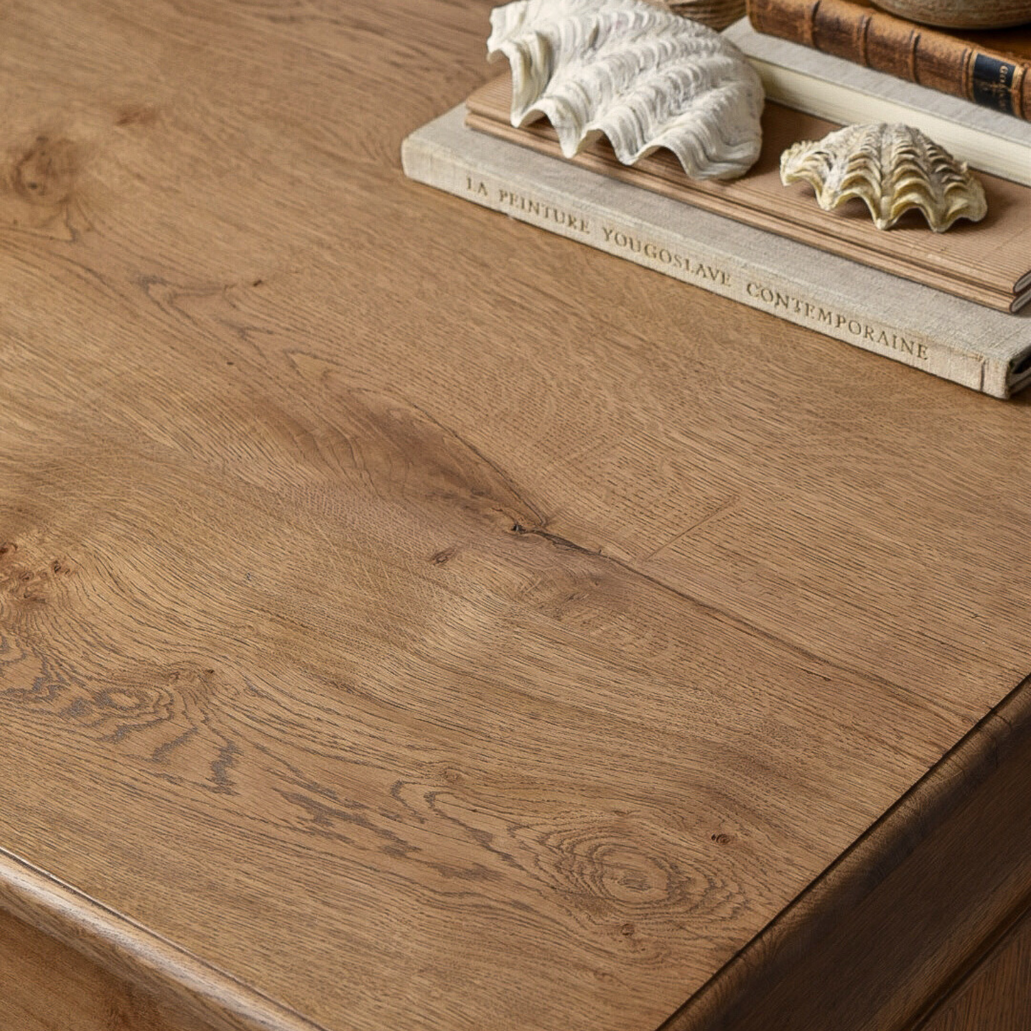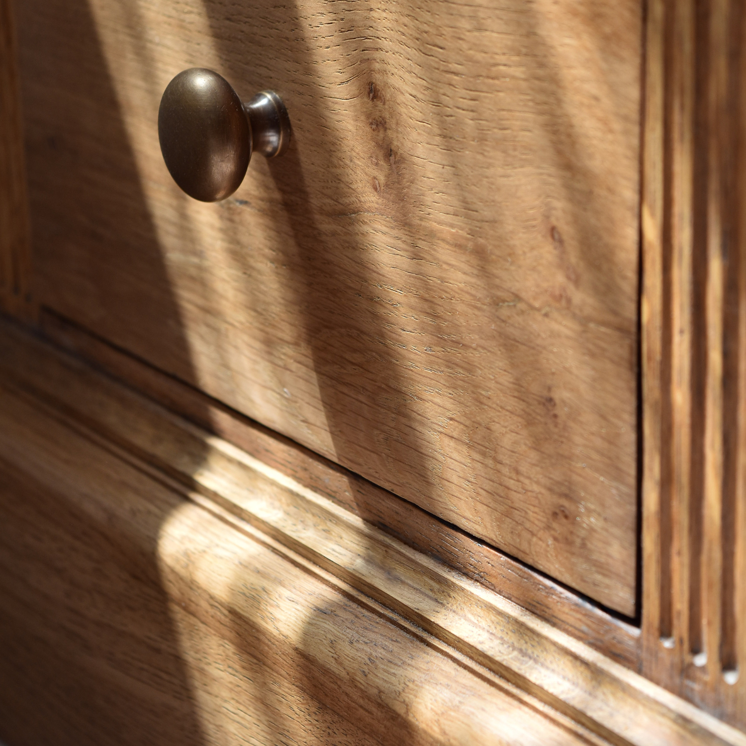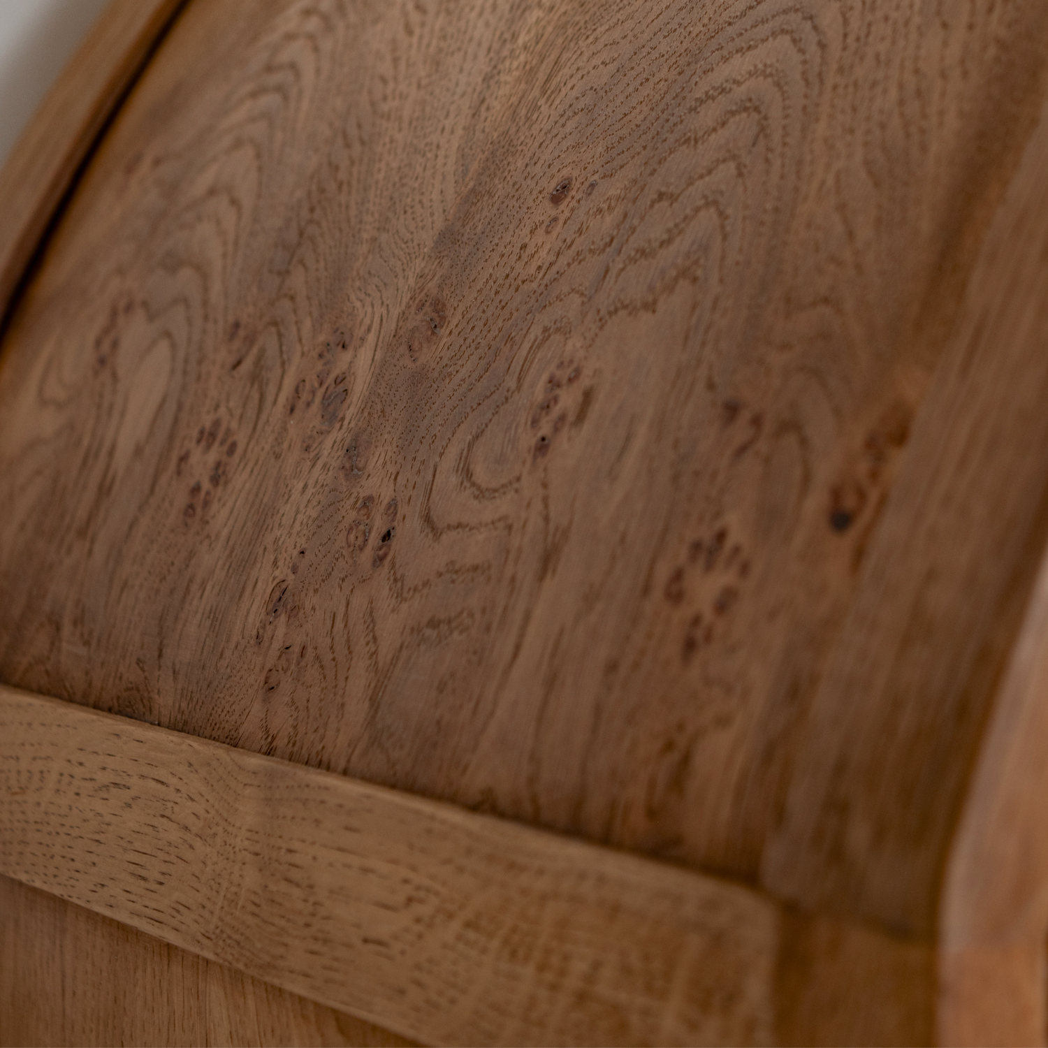 A charming light wood tone with a delightful velvety complexity, combining deep brown highlights with soft honey undertones. This finish is a perfect step above raw wood, adding character and a remarkably satisfying texture. It pairs beautifully with antiqued brass and neutral tones, while complementing colder color accents by accentuating their hues.