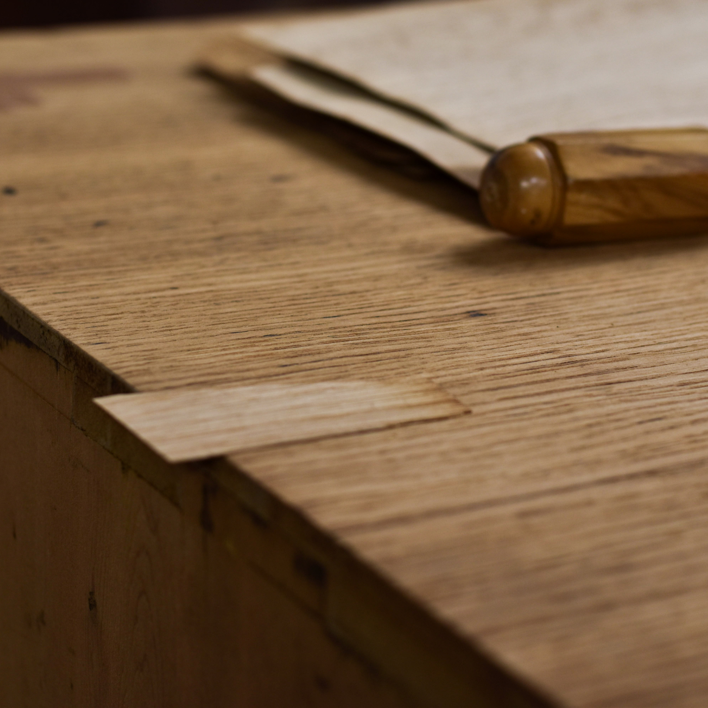 Inspection is the first and most decisive stage in the restoration process. Each piece is carefully examined by two experienced restorers who study its structure, construction, and surface in meticulous detail. They assess every joint, veneer, and internal component to identify structural weaknesses, signs of previous repairs, or hidden damage. The wood, finish, and hardware are analysed to understand how the piece was made, how it has aged, and what interventions will ensure its longevity.